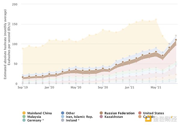该草案还定义了数字货币挖矿,即固定获取加密货币的活动。草案规定了一种机制,用于向税务当局提供行使其控制和监督职能所需的信息。事实上,俄罗斯拥有世界上第三大的 BTC 哈希率,截至2021年8月,俄罗斯占据了比特币全网13.6%的算力。